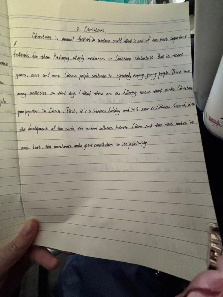 同时,我整理了平时作文中的常见错误,像时态混淆、主谓不一致、介词搭配不当等,还积累了常用的连接词和高级句型,比如用“as far as I’m concerned”替代简单的“I think”,让表达更具层次感。遇到优秀范文,我会摘抄经典句式,分析其逻辑衔接和词汇运用,借鉴到自己的写作中。