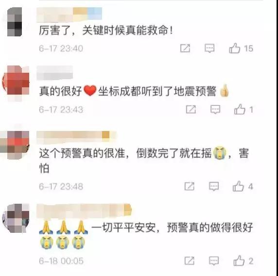 网友表示,听到预警声音想哭,这个地震预警网真的很厉害,希望能普及!