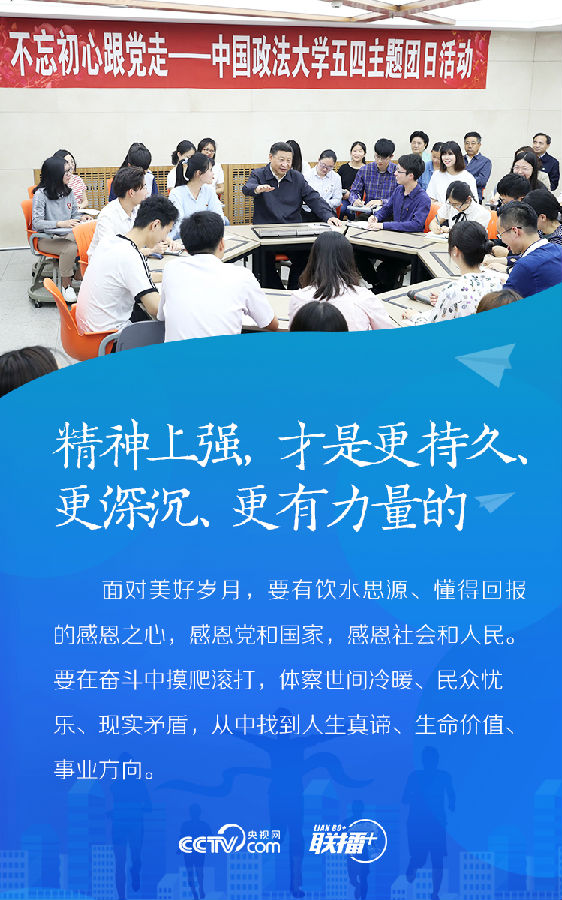 去年430日,习近平总书记在纪念五四运动100周年大会上发表重要讲话,言之谆谆、期望殷殷。其中,有为人处世的箴言,有成长成才的指导,有创新创造的激励,激发起广大青年为梦想不懈奋斗的蓬勃力量。