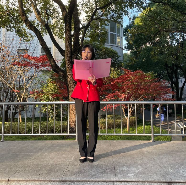 本次升旗仪式由19级艺术与科技中本贯通班的顾琰主持,由20级学前教育班的贺宇婕发表了她的看法。