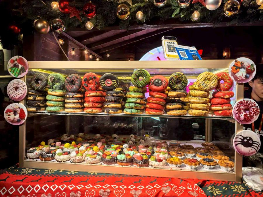 手作姜饼人、德式香肠、杏仁糖饼摆满摊位,摊主们用德语热情招呼,咬一口外酥里嫩的香肠,再捧着一杯热红酒暖手,幸福感直接拉满。市集里还有手工木雕、圣诞花环等德式手作,精致的细节藏着满满的匠心,随手拍都是复古圣诞大片。