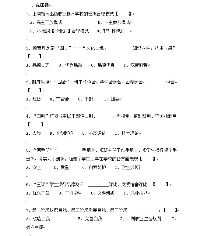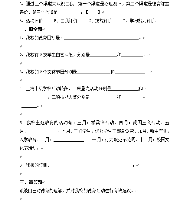 德育评估问卷