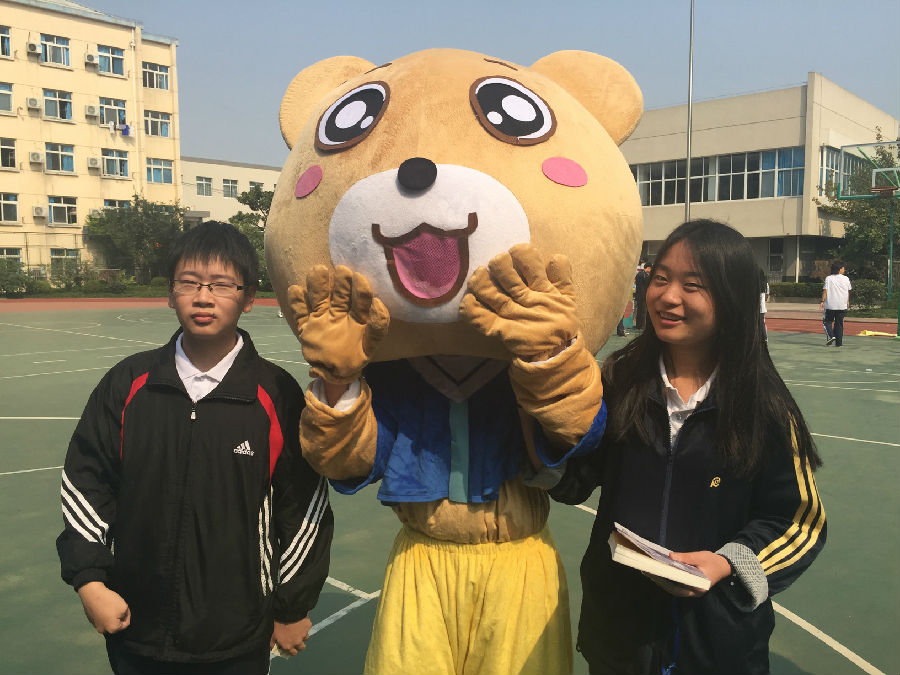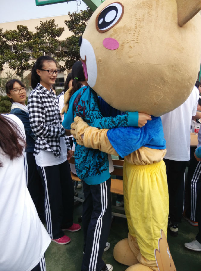 游戏火热进行中,不少新同学在参与的同时,也喜欢上了我们呆萌可爱的易班熊,与它合影留念。