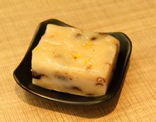 再来就是大家最喜欢的吃了~既然是传统佳节,那一定就有传统的流传至今的美食啦。说到重阳节,当然就要吃重阳糕了。据史料记载,重阳糕又称花糕、菊糕、五色糕,制无定法,较为随意。 九月九日天明时,以片糕搭儿女头额,口中念念有词,祝愿子女百事俱高,乃古人九月作糕的本意。讲究的重阳糕要作成九层,像座宝塔,上面还作成两只小羊,以符合重阳(羊)之义。有的还在重阳糕上插一小红纸旗,并点蜡烛灯。这大概是用“点灯”、“吃糕”代替“登高”的意思,用小红纸旗代替茱萸。当今的重阳糕,仍无固定品种,各地在重阳节吃的松软糕类都称之为重阳糕。在此附上一张图片,是不是很想吃呢(不过!也只能看看图片)